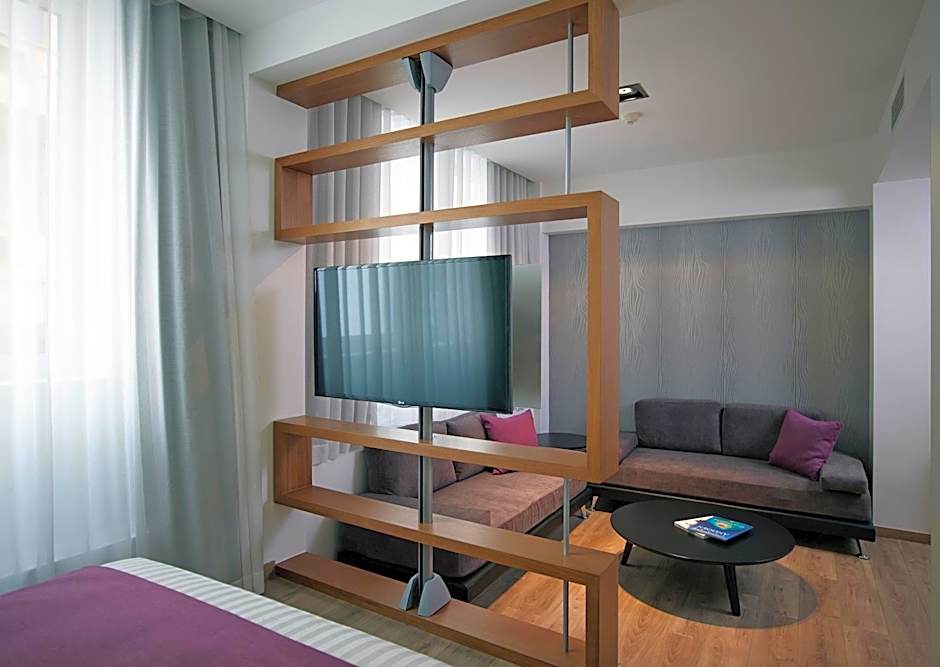 This suite includes an elegant living area and private balcony with imposing view to the Acropolis.